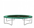 Соединение с рамой - 96 оцинкованных конусообразных пружин длиной 21,5 см, запатентованного дизайна: разработанные пружины более эластичные и, соответственно, более безопасные в использовании, прыжки в результате мягче и точнее. Качественный защитный мат   шириной 36 см и толщиной 2,5 см полностью закрывает раму и пружины. Верхний и нижний слои мата произведены из плотного PVC,  наполнитель EPE (см. рис.). Прыжковое полотно, устойчивое к ультрафиолетовому воздействию, из  тканного полипропилена американской компании  TenCate Geosynthetics торговой марки  « PERMATRON».
